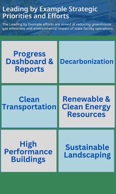 LBE works collaboratively with state agencies and public colleges and universities to advance clean energy and sustainable practices that reduce the environmental impacts of state government operations.