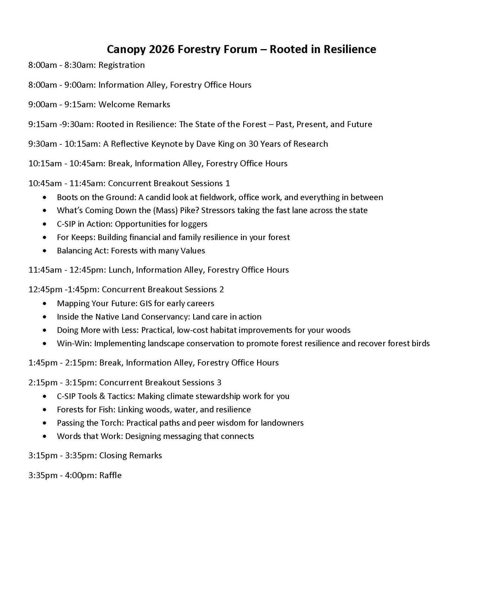 Keynote David King looks back on more than 30 years of research on birds and forests. Drawing from science, fieldwork, and personal land stewardship, he explores how diversity, disturbance, and intentional management are rooted in building resilient forests and wildlife communities.