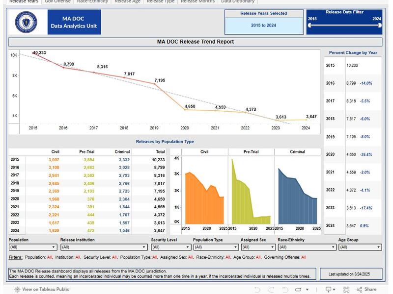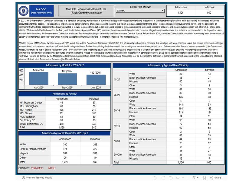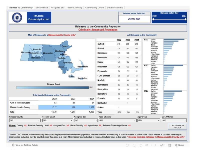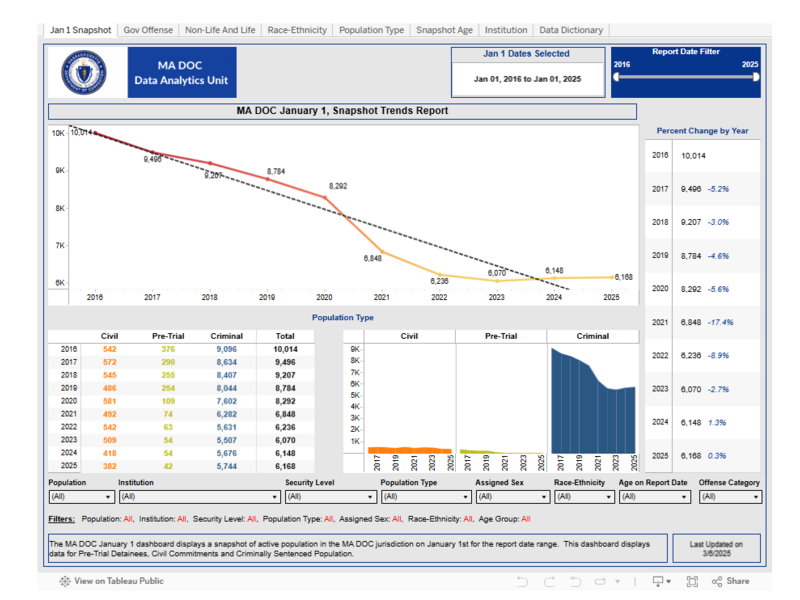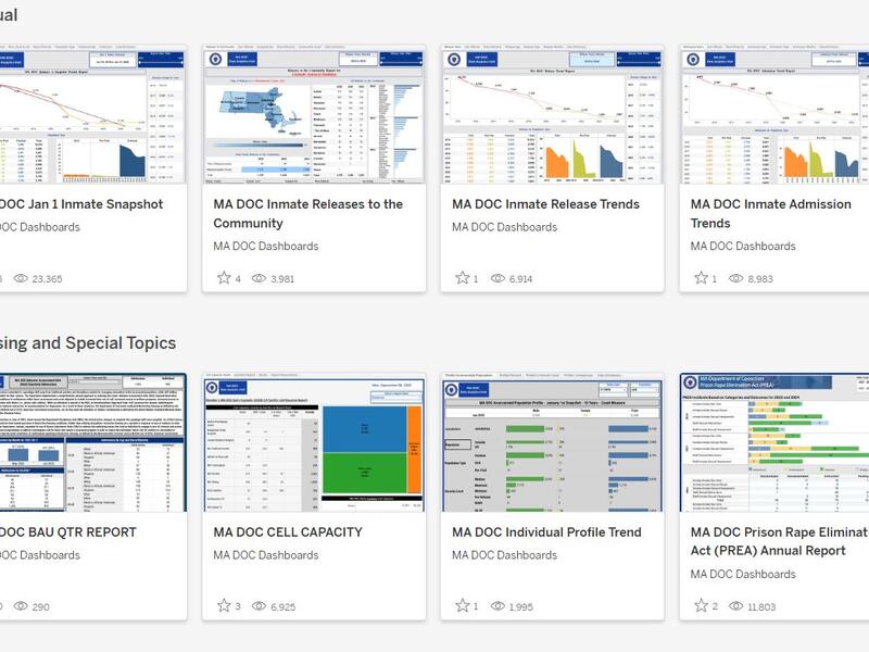 Each dashboard provides a visual, interactive display of key data and allows users to view the incarcerated population in greater detail.
