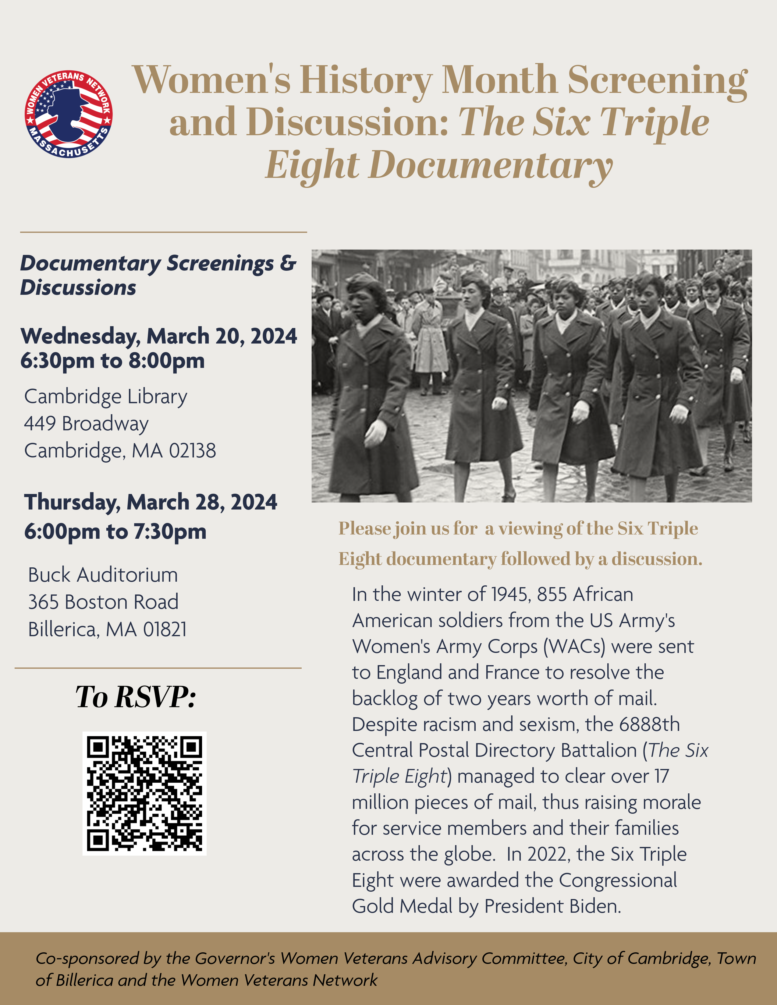 - This page, Women's History Month Screening and Discussion: The Six Triple Eight Documentary, is offered by