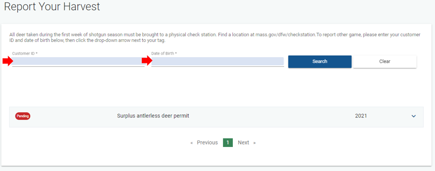 NEW: MassFishHunt was updated May 7, 2025. Click here for instructions to log into the new system and find your account information. - Once logged in, you will automatically be taken to your customer dashboard where you can view your licenses, permits, and stamps. Scroll to the bottom of the page to view current and upcoming harvest reports to see your available harvest reports.