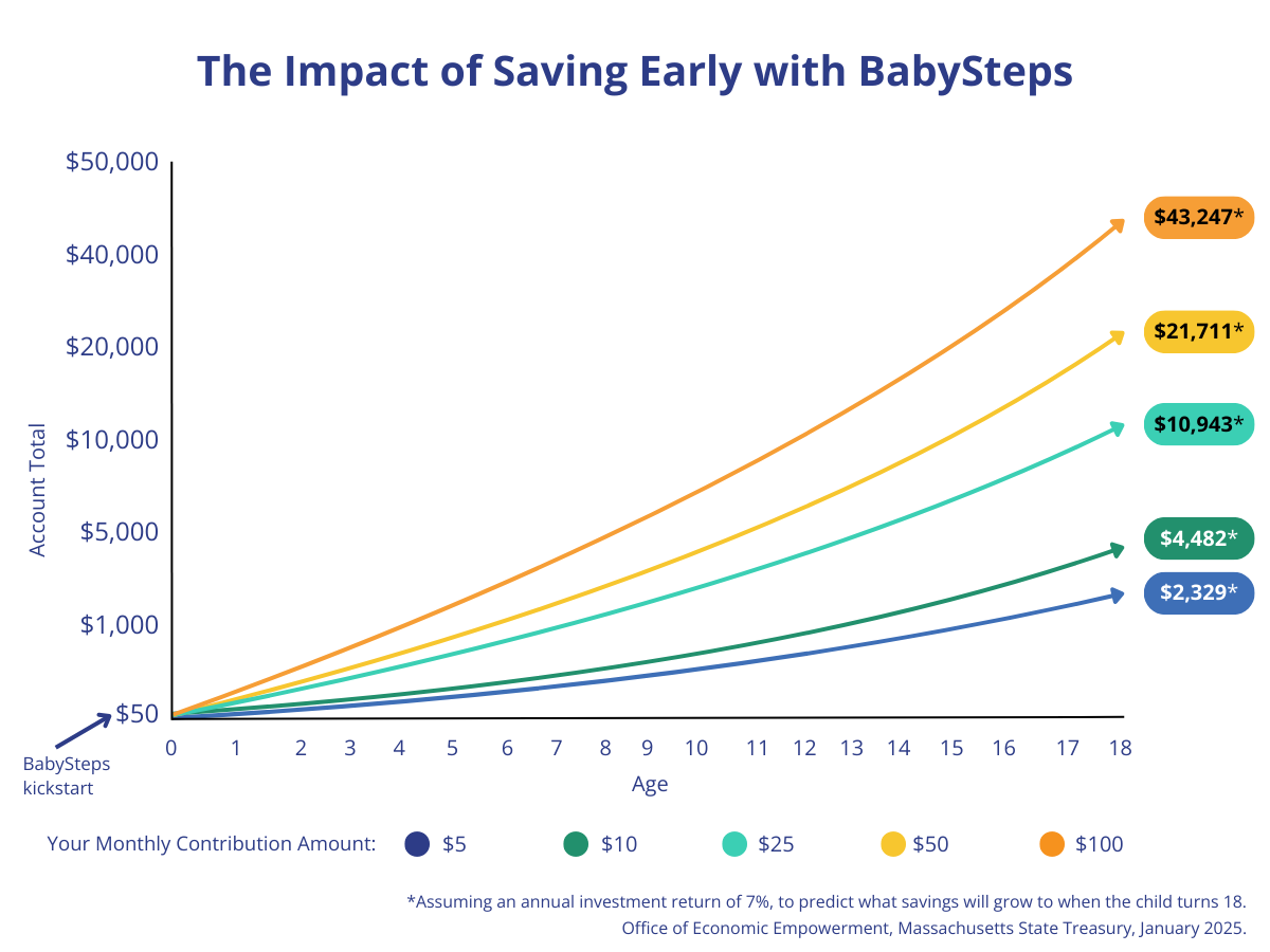 Every savings account affiliated with BabySteps will be a MEFA U.Fund 529 account, a tax-advantaged plan authorized by Section 529 of the Internal Revenue Code. A 529 is a savings account that can provide tax-free investment growth and withdrawals for qualified expenses such as college, vocational, and other educational costs. These accounts are specifically offered by the Massachusetts Educational Financing Authority (MEFA), a state authority established by the Commonwealth, and managed by Fidelity Investments.