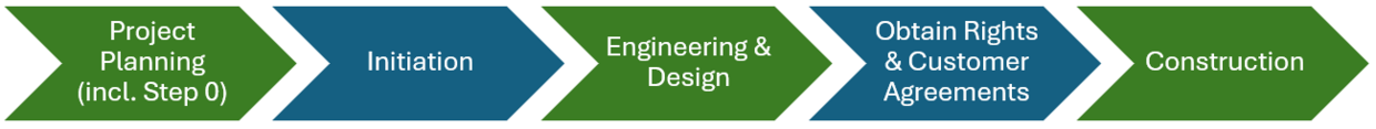The process to connect a new project to the electric grid includes 5 steps, shown in the figure below. Regardless of the project, the most important step is to contact your local utility as early as possible.