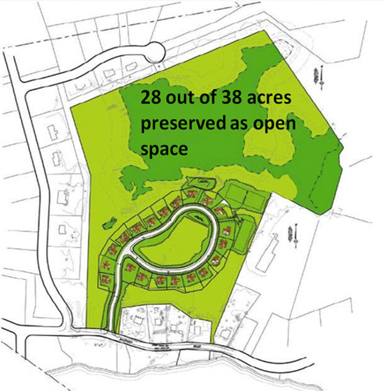 - A conventional subdivision (the conventional layout came from original plans submitted for the property before the project was redesigned as a cluster development).
