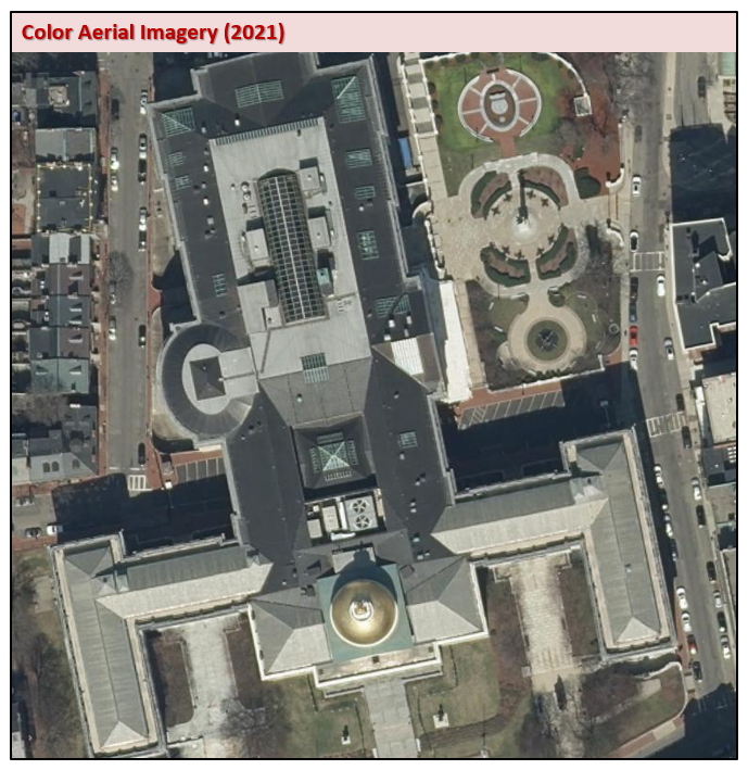 In spring 2021, MassGIS acquired statewide, 15 cm resolution, 16-bit, 4-band (RGB-IR) digital orthophotos. Funding for this imagery was provided by MassDOT, the State 911 Department, and the Executive Office of Technology Services and Security (EOTSS).
