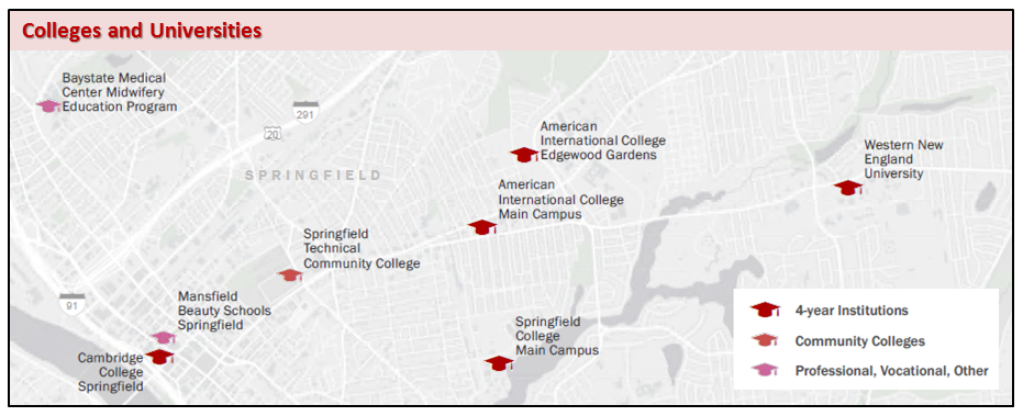 Sites appearing in this layer are those normally attended by students after completion of high school. Types are public and private, and categories include co-ed, vocational, technical, religious, medical, and traditional 2- and 4-year colleges and universities.