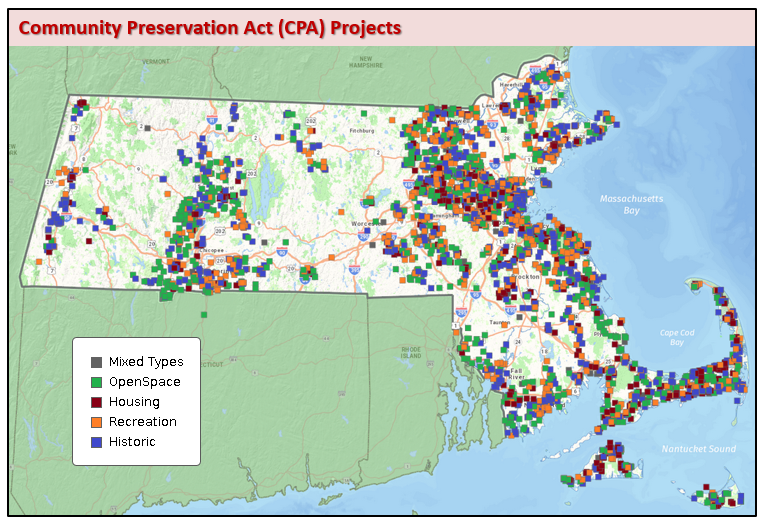 This datalayer only contains Community Preservation Act projects that have associated points.