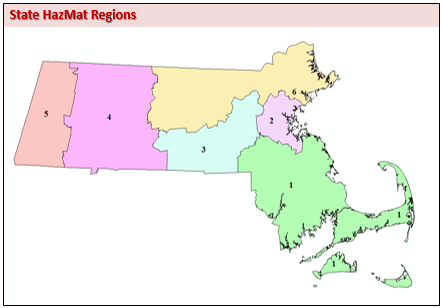 The MA HazMat Districts were created by the Department of Fire Services organized under the Executive Office of Public Safety, and overseen by the State Fire Marshal. The 6 divisions are strategically located to be able to respond anywhere in the state within 1 hour. The HazMat teams assigned to each district support the local fire departments with technical information, expertise and specialized equipment. The district layer was created by coding each town with numbers 1-6 and then dissolving the town boundaries.