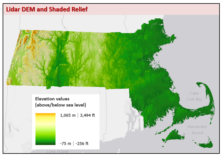 MassGIS has created seamless, statewide imagery layers from the Legacy Lidar Terrain Data. The datasets include: