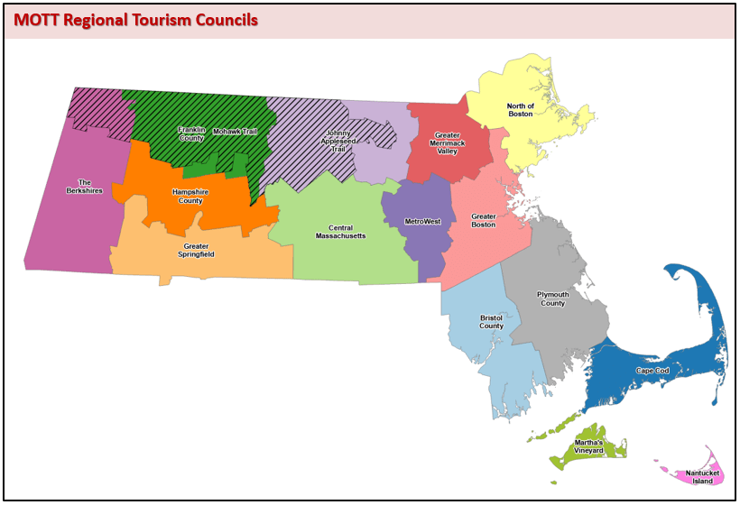 The Commonwealth of Massachusetts is divided into 16 tourism regions that are marketed by a non-profit, membership-based organization called a Regional Tourism Council (RTC). Regional Tourism Councils develop regional advertising, public relations, brochures, and other marketing initiatives throughout the year. The Massachusetts Office of Travel & Tourism (MOTT) markets the state as a whole while the RTCs focus on promoting their specific designated service area of the state. The RTCs are an invaluable resource for learning about attractions, accommodations, events, restaurants, retail, networking, and other tourism businesses. The state’s annual grant program helps the RTCs accomplish their marketing initiatives. In FY24, more than $8.1 million will be distributed among the RTCs to support their advertising, administrative, and marketing efforts.
