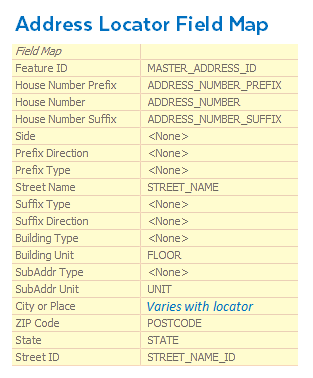 | ADDRESS_NUMBER | Long Integer / 10 | Integer portion of address number, or first number if the full address number is a range. |
