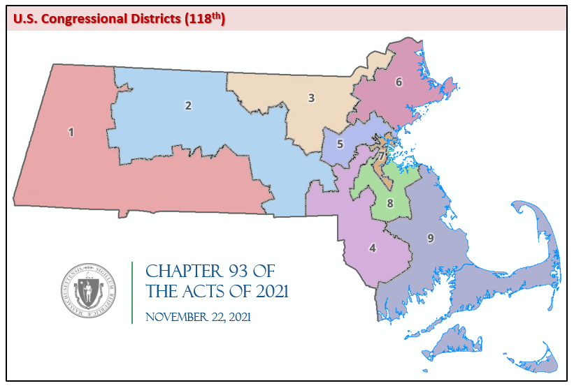 Staff at the Massachusetts General Court Special Joint Committee on Redistricting developed this layer. Governor Baker signed the new districts into law on November 22, 2021, with Chapter 93 of the Acts of 2021.