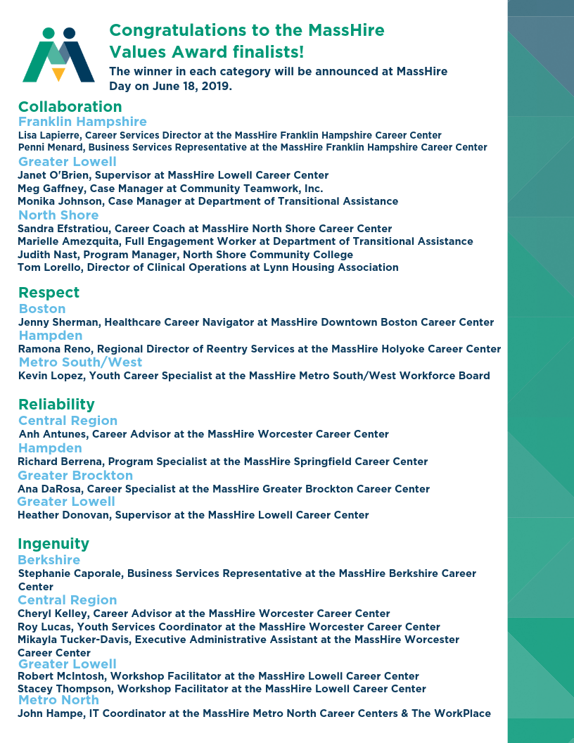 Nominations for MassHire Champion Award has been extended to July 29, 2022