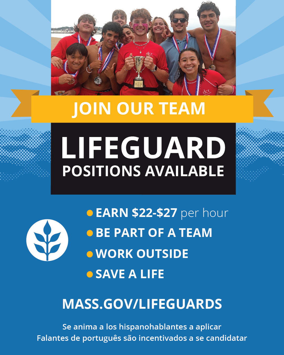 Issuance: 100 DCS 05.203 Issued: 02/11/2026 Lifeguard and Waterfront Safety Staff Recruitment Through the Department of Conservation and Recreation 05-203A: Flyer (English) 05-203B: Flyer (Portuguese) 05-203C: Flyer (Spanish) |