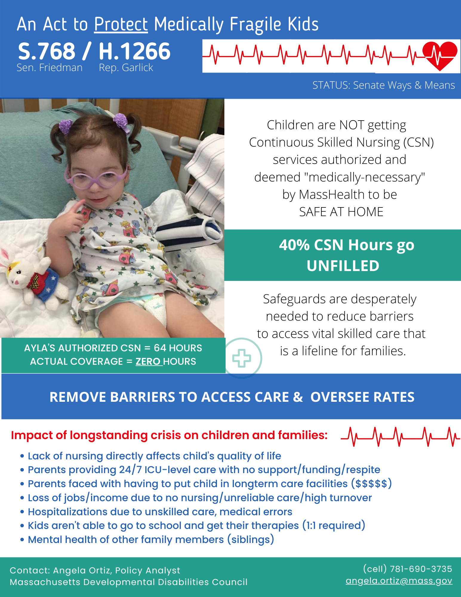 Children are NOT getting Continuous Skilled Nursing (CSN) services authorized and deemed "medically necessary" by MassHealth to be SAFE AT HOME