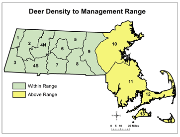 The proposal is to open the archery deer season two weeks early in eastern Massachusetts (Wildlife Management Zones 10–14). Click here to find more information about the public hearing, learn how to provide a public comment, and read proposed regulatory language.