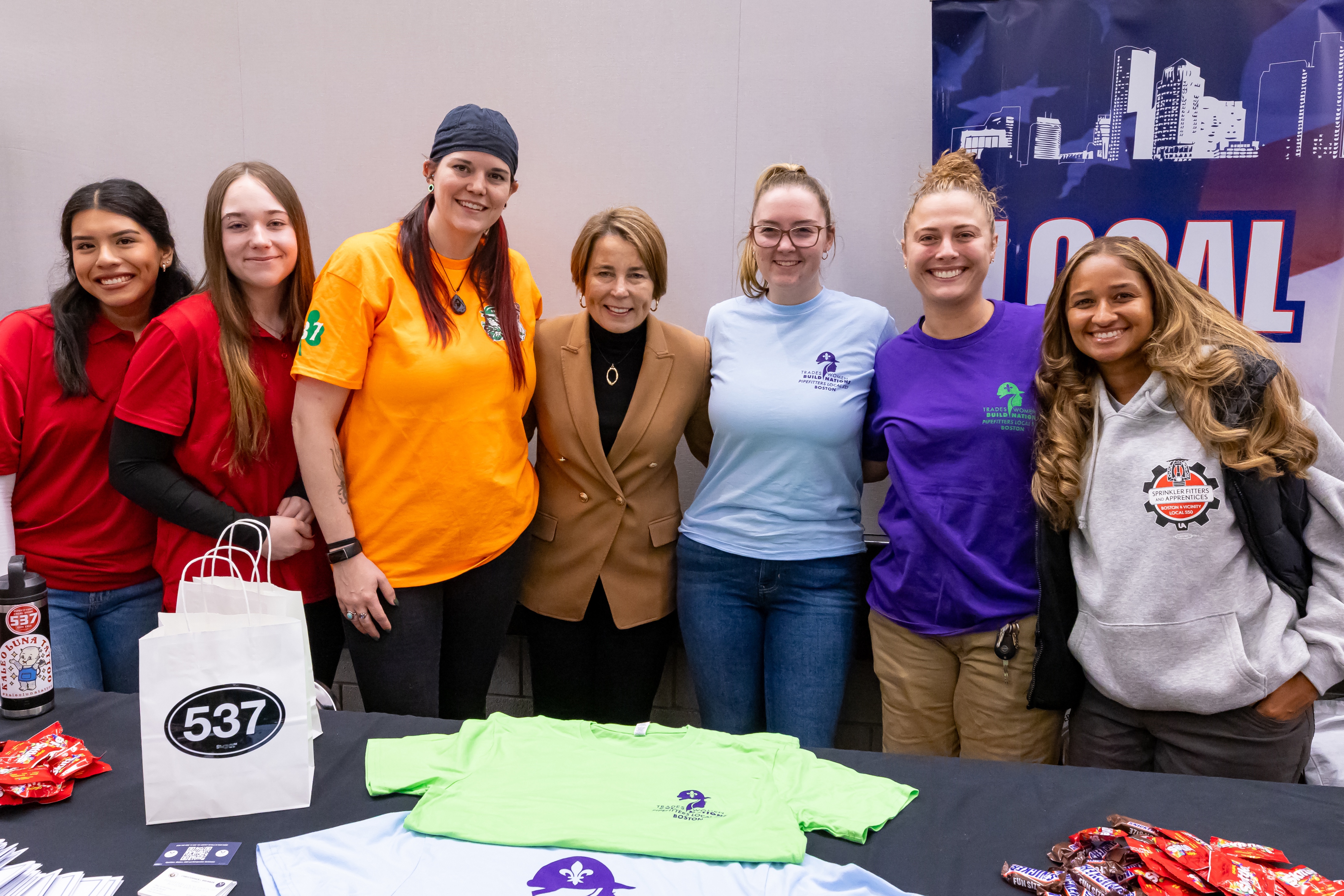 Boston — Governor Maura Healey today joined union leaders and hundreds of young women from high schools across Greater Boston at the 10th Annual Massachusetts Girls in Trades Eastern Conference & Career Fair connects girls enrolled in career and technical education programs with tradeswomen, union apprenticeship programs, and industry leaders to learn more about mentorship and career opportunities. Massachusetts Girls in Trades is committed to promoting good-paying, high-skilled careers in union construction trades to female students in middle school and high school, as well as recent high school graduates.
