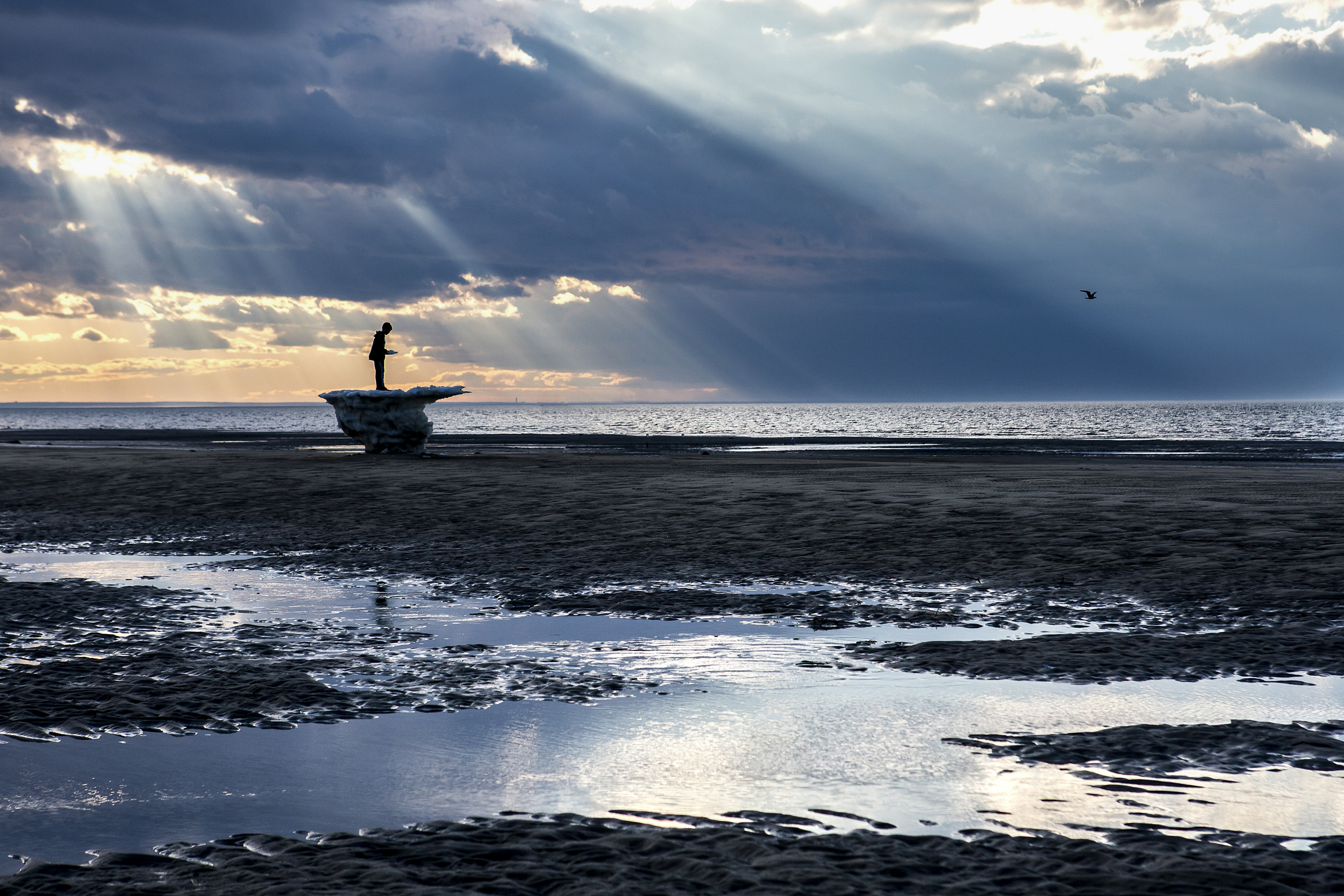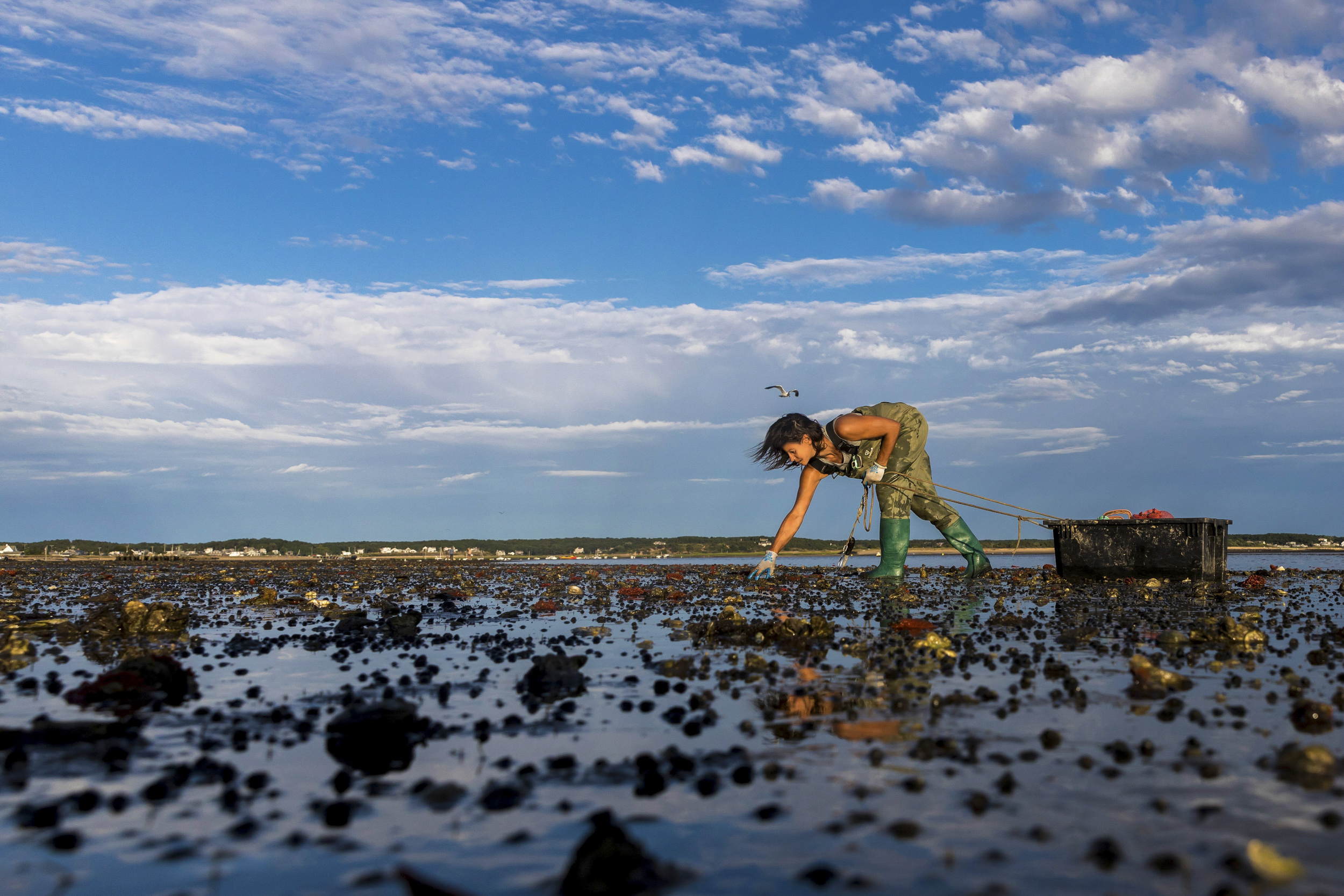 Julia Cumes, a photographer from Brewster, MA, is known for capturing story-telling moments and expressive portraits that explore significant societal issues like gender inequality, climate change and more. Her work, Wild Harvester, Wellfleet andNature’s Cathedral, are featured in the Governor’s office. Wild Harvester portrays Sonya Woodman, a wild oyster harvester, highlighting her deep connection to the sea. Nature’s Cathedral captures a young boy standing on the last chunk of ice after a cold winter, bathed in light, symbolizing a profound spiritual connection to nature. These aluminum-framed photographs reflect the strong ties between people and the coastal landscape of Massachusetts.
