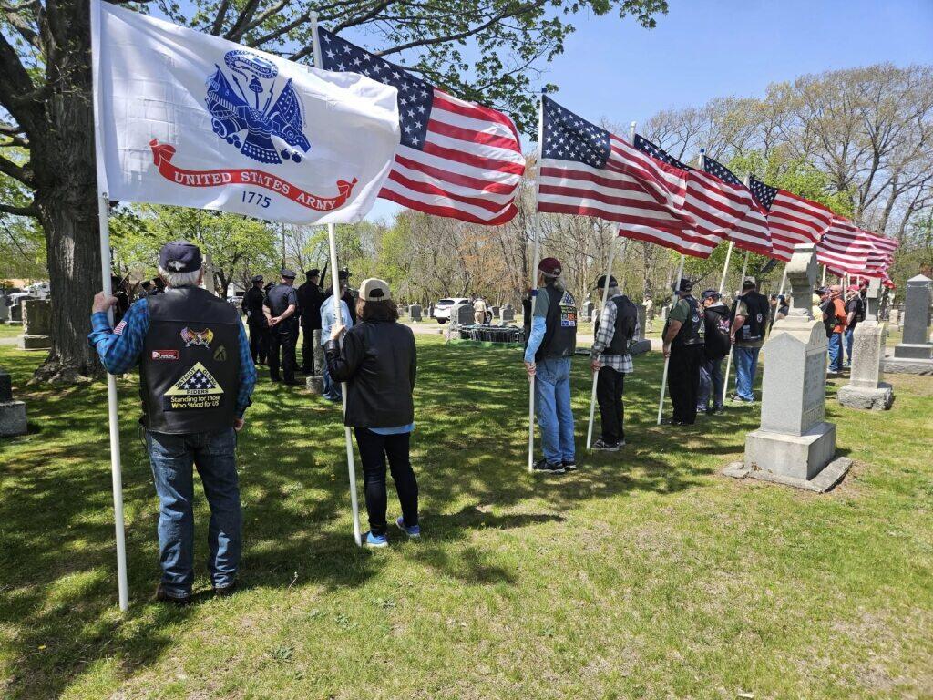 On April 29, 2025, members of the Massachusetts Patriot Guard Riders joined Gold Star Family members at Calvary Cemetery in Brockton to honor Korean War Veteran John J. Rooney during his unaccompanied graveside funeral.