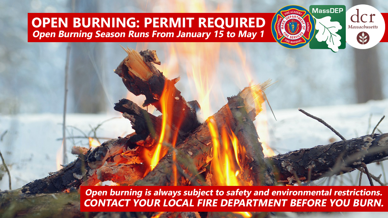 State Fire Marshal Jon M. Davine, Commissioner Bonnie Heiple of the Massachusetts Department of Environmental Protection (MassDEP), and Chief Fire Warden David Celino of the Department of Conservation and Recreation (DCR) said restrictions on open burning are imposed at the state and local levels.