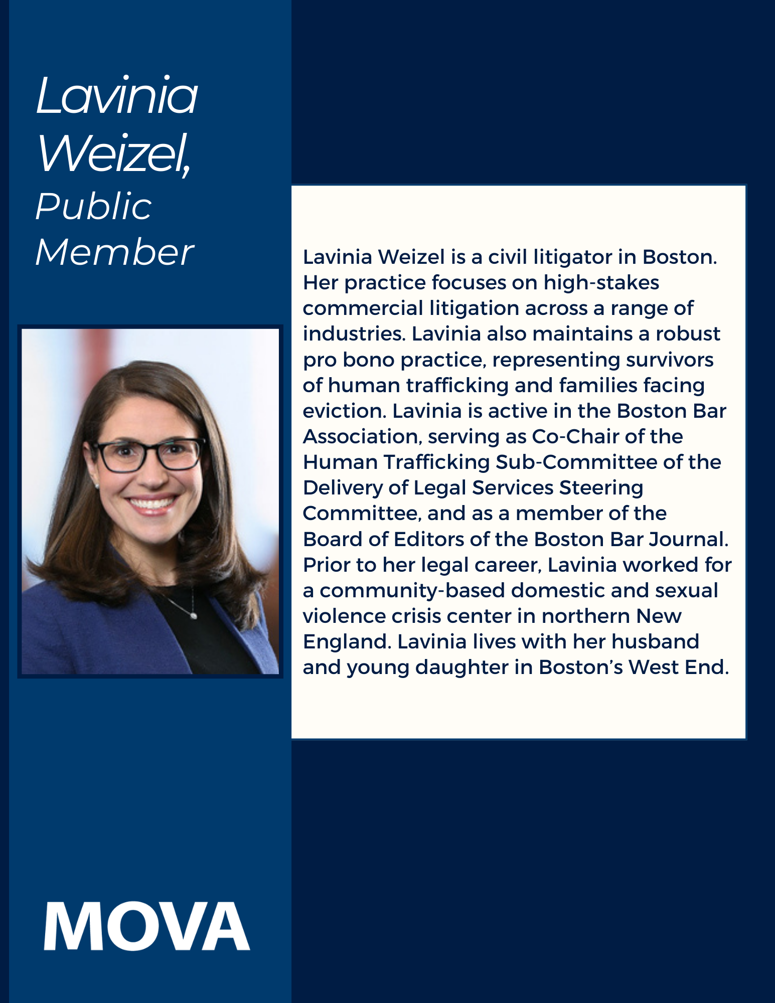 To be kept informed about VWAB meetings and updates from MOVA, please join our email distribution list by sending your name and email address to mova@mass.gov and asking to be added to the general listserv. We never share contact information.